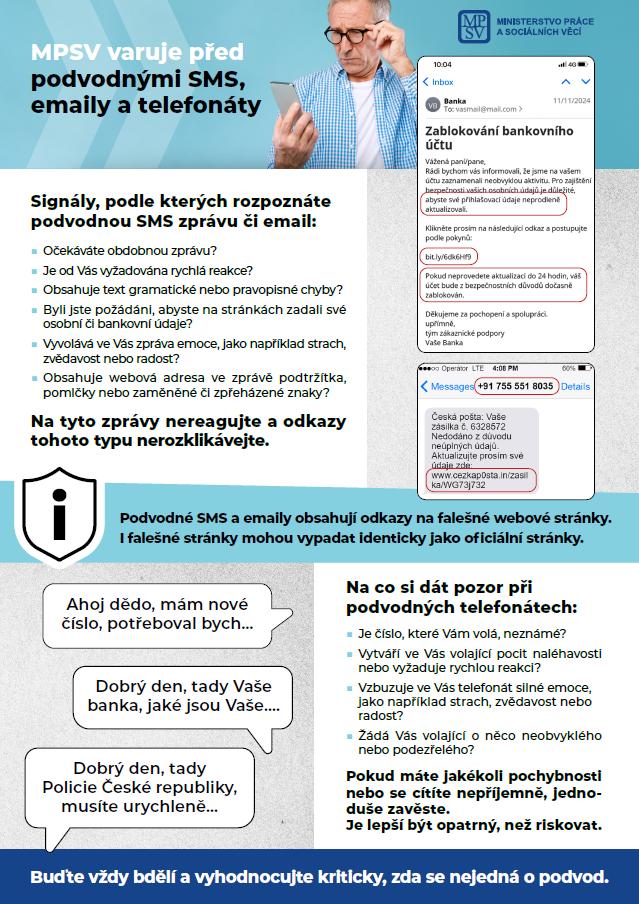 Neustále čelíme digitálním podvodům, jejichž cílem je využít falešné identity MPSV a vylákat citlivé osobní a bankovní údaje od našich občanů.